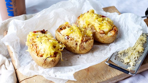 Das sind nicht irgendwelche Pellkartoffeln; das sind unglaublich köstliche Pellkartoffeln, mit 22g Protein pro Portion. Was will man mehr?