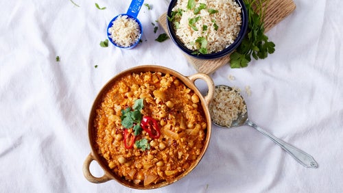 Dieses Curry ist auch wahnsinnig makronährstofffreundlich, wenn man reichlich Gemüse in Form von Blumenkohl nutzt und mit 25g Protein pro Portion, ist das Rezept ideal, wenn du nur wenig Zeit zur Verfügung hast.