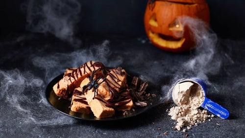 Diese einfachen Muffins sein die perfekte Nascherei, um noch eine zusätzliche Portion Protein zu dir zu nehmen. Wieso gehst du nicht noch eine Stufe weiter und toppst sie mit gruseliger Halloween-Deko?