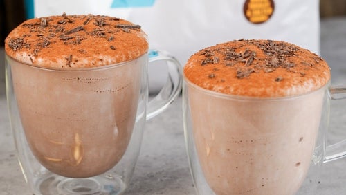 Gib die Avocado, die Banane, das Kakaopulver, den Limettensaft, die Schlagsahne, sowie den Sirup in die Küchenmaschine bzw. Mixer und püriere alles zu einer homogenen Creme.