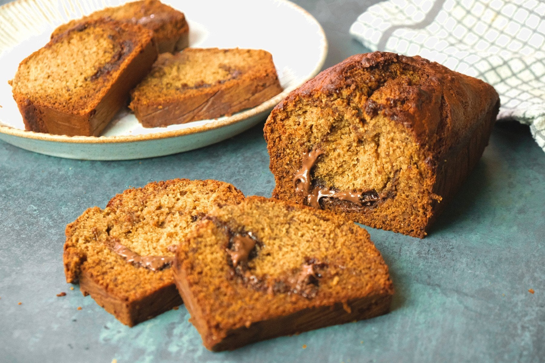 Verteile nun den Protein-Aufstrich auf der Oberfläche, um einen Wirbeleffekt auf dem Brotlaib zu erzeugen, und backe das Ganze 30 Minuten lang, bis ein Zahnstocher sauber herauskommt.