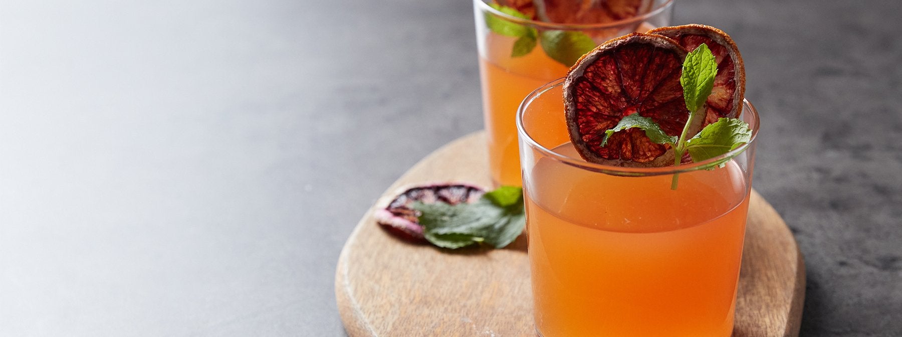 2 Messlöffel Essential BCAA 2:1:1, Blutorange - Minzblätter & Blutorangensegmente zum Garnieren (optional)