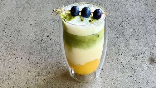 Für die fruchtige, erste Schicht gibst du das Wasser und das Clear Whey Isolat in einen Shaker und schüttelst es zusammen kräftig durch, bis es klumpenfrei ist. Gieße dann die Flüssigkeit in einen Topf und füge 2 Päckchen Gelatine hinzu. Lasse die Gelatine etwa eine Minute lang „quellen“.