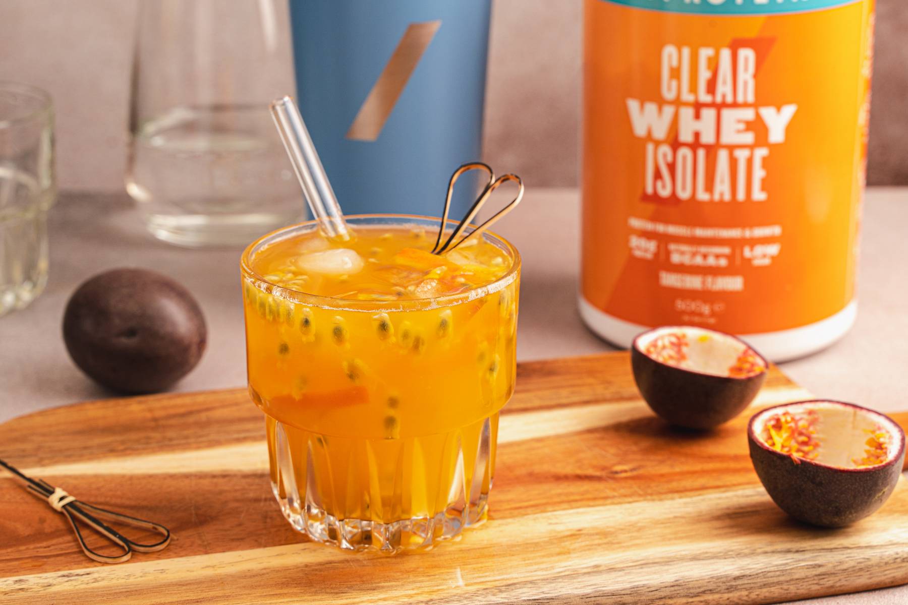 Clear Whey Tangerine Cocktail mit Passionsfrucht