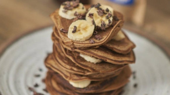 Erhitze eine Pfanne bei mittlerer Hitze (sprühe sie mit kalorienarmen Backspray ein oder verwende vegane Butter).