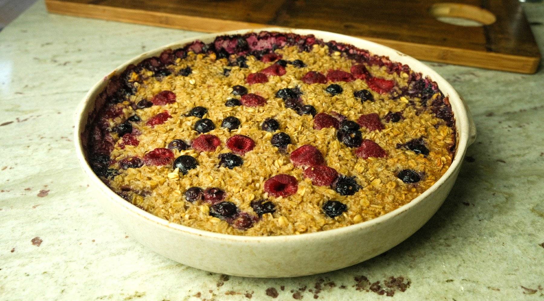 - Backe den Haferflocken-Beeren-Kuchen für 40 Minuten im Ofen und lasse ihn danach ein wenig abkühlen, ehe du ihn servierst.