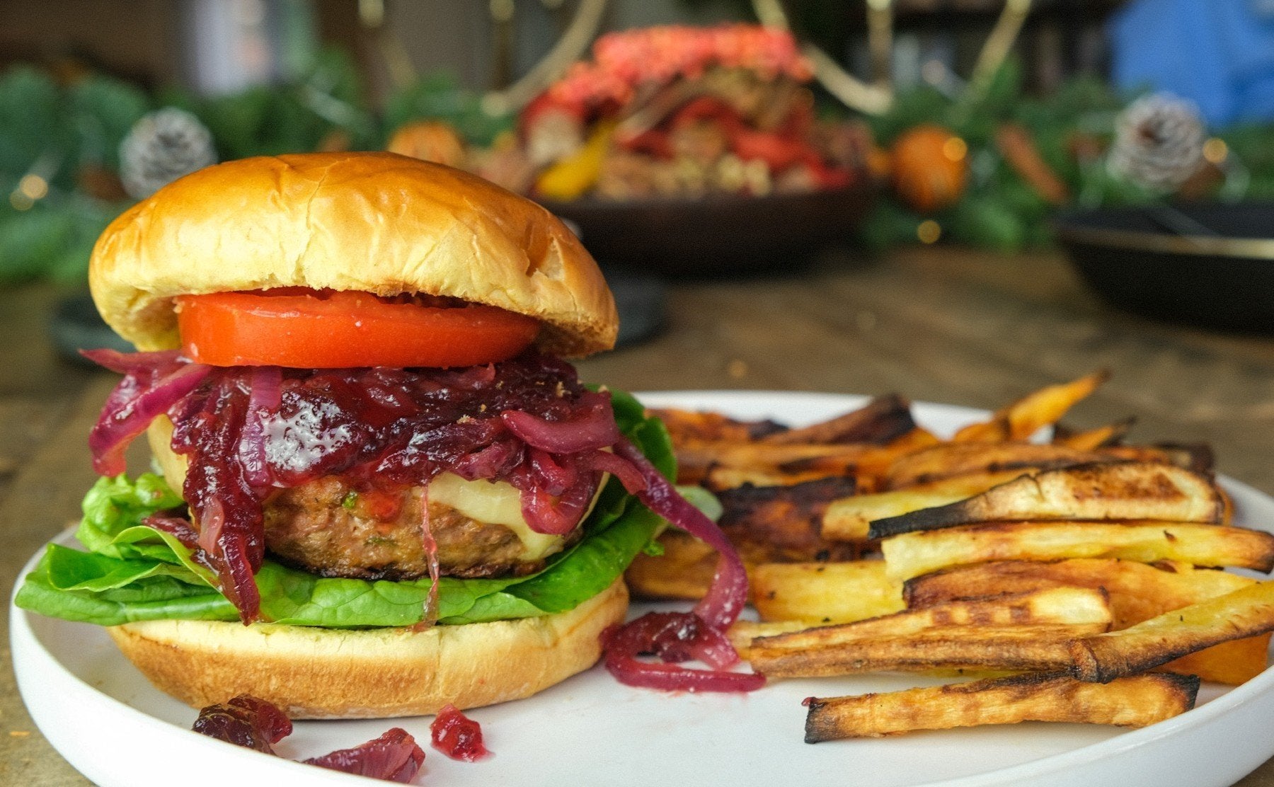 Der Weihnachtsburger mit Putenfleisch & Cranberry-Sauce