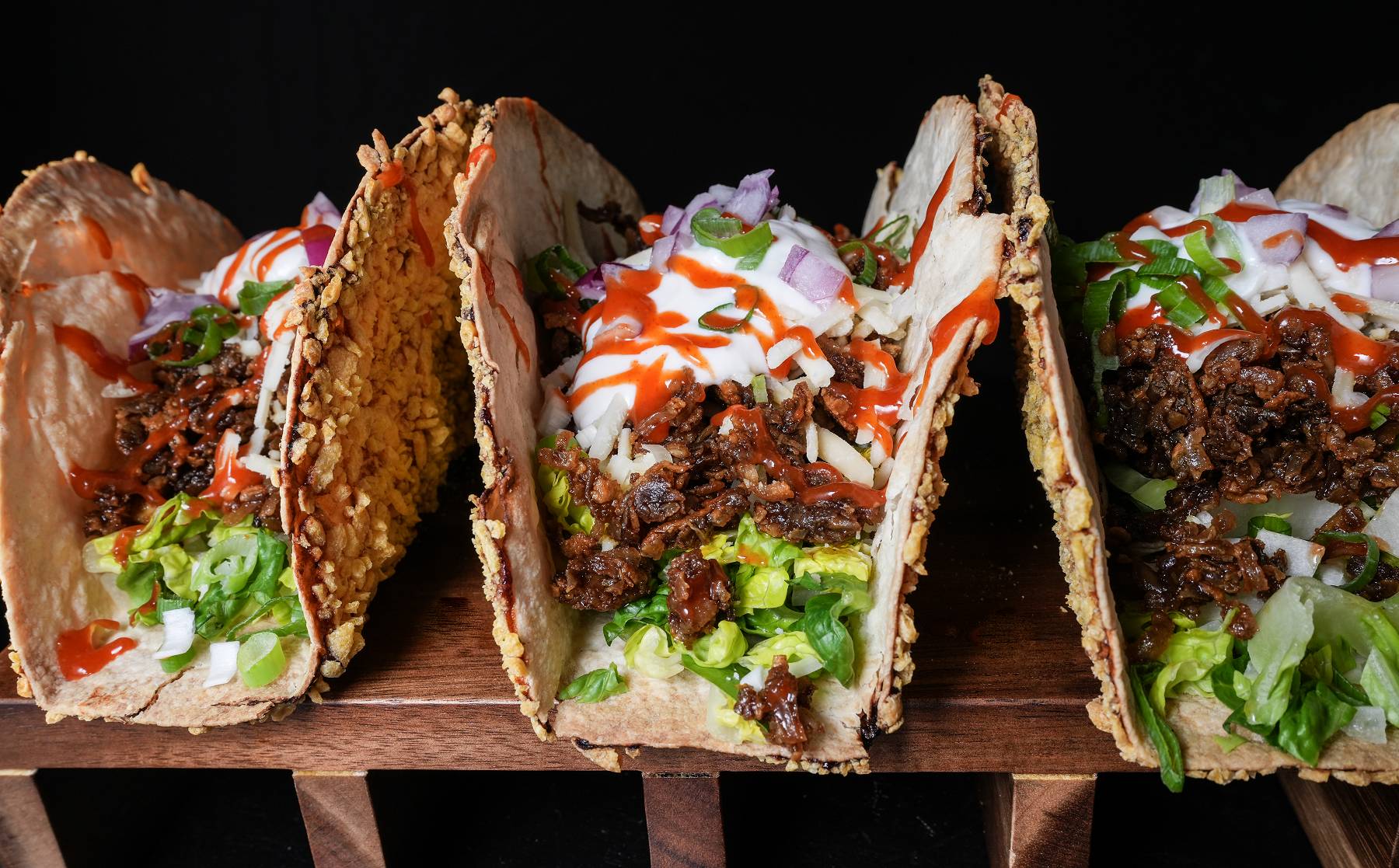 Für unsere Dorito Tacos verwenden wir eine Tofu-Beef Füllung, die aus zerkleinertem Tofu besteht, welches in zerkleinerten Cornflakes paniert und anschließend knusprig gebraten und gut gewürzt wurde. Und diesen Genuss schmeckst du auch bei jedem Bissen!