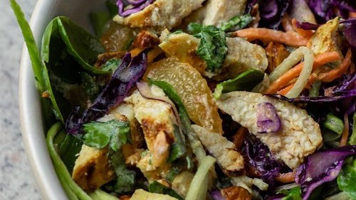 3 Winter-Salate mit gebackenem Hühnerfilet und würzigen Mandeln