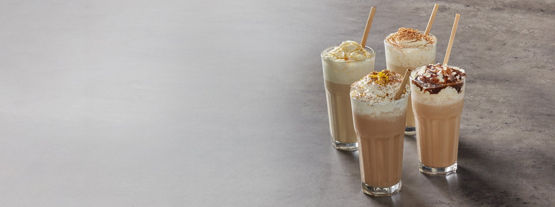 Du brauchst für jede Eiskaffee Protein Shake Variation Milch, Eis, einen Espresso Shot und Proteinpulver. Gib die Zutaten in einen Mixer und mixe alles cremig.