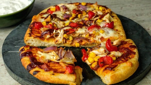 BBQ Hähnchen Pizza mit Knoblauch & Kräuter Dip | Fakeaway Rezepte