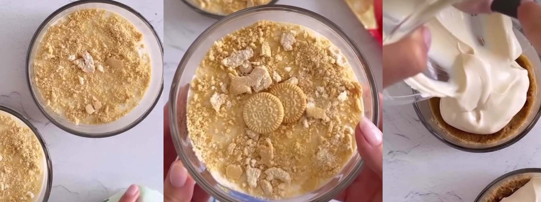 Verteile die Kekskrümel anschließend auf dem Joghurt-Keks-Mix und stelle die Tupperdosen verschlossen über Nacht in den Kühlschrank. Genieße sie anschließend zum Frühstück (sie halten sich im Kühlschrank für bis zu 3 Tage).