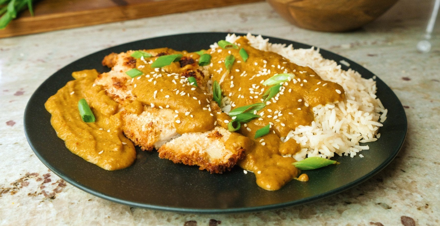 Es ist die perfekte Kombination aus zarter Hähnchenbrust, knusprigen Panko-Bröseln und zählüssiger Currysauce.