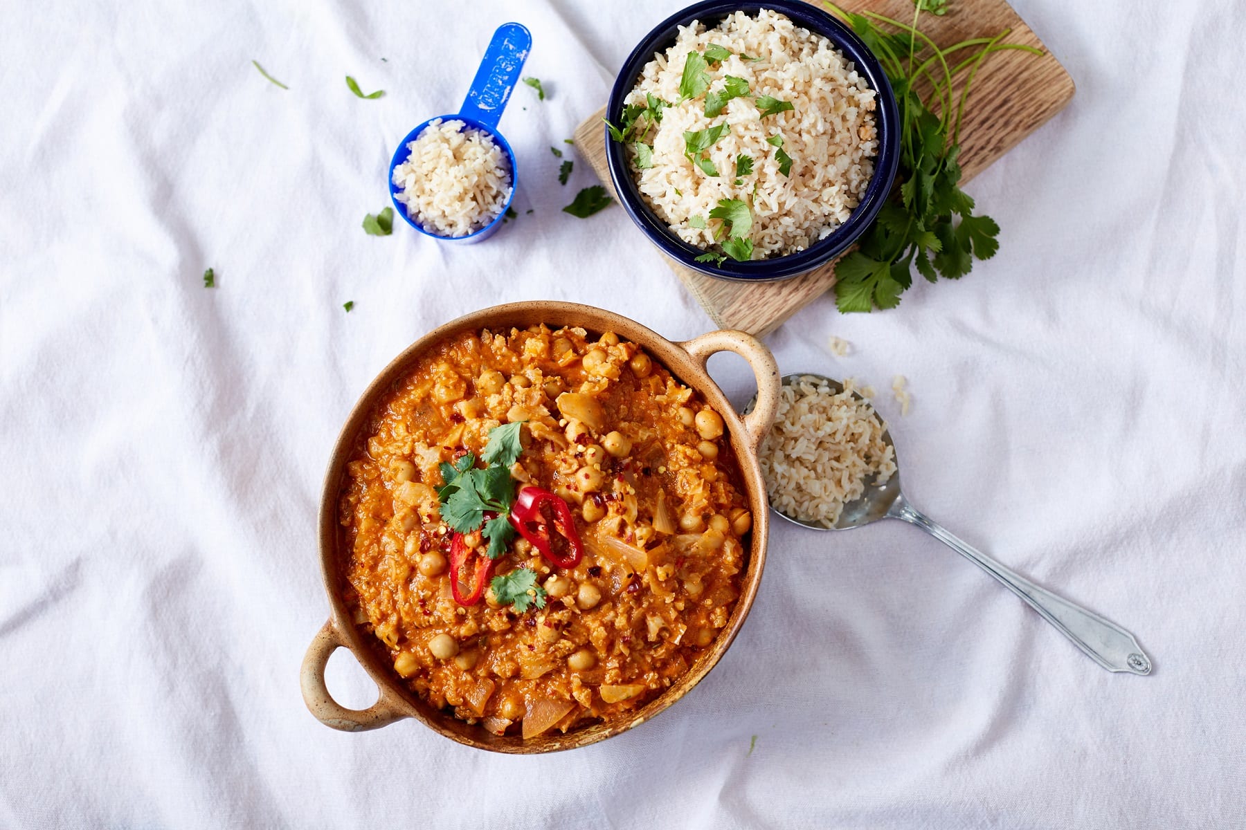 - Iss dein Curry mit Vollkornreis, etwas Joghurt und ein paar Tropfen Limettensaft.