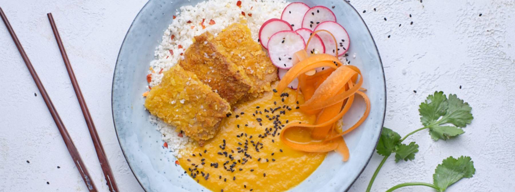 Probiere diesen knusprigen Tofu mit cremiger Katsu-Sauce!
