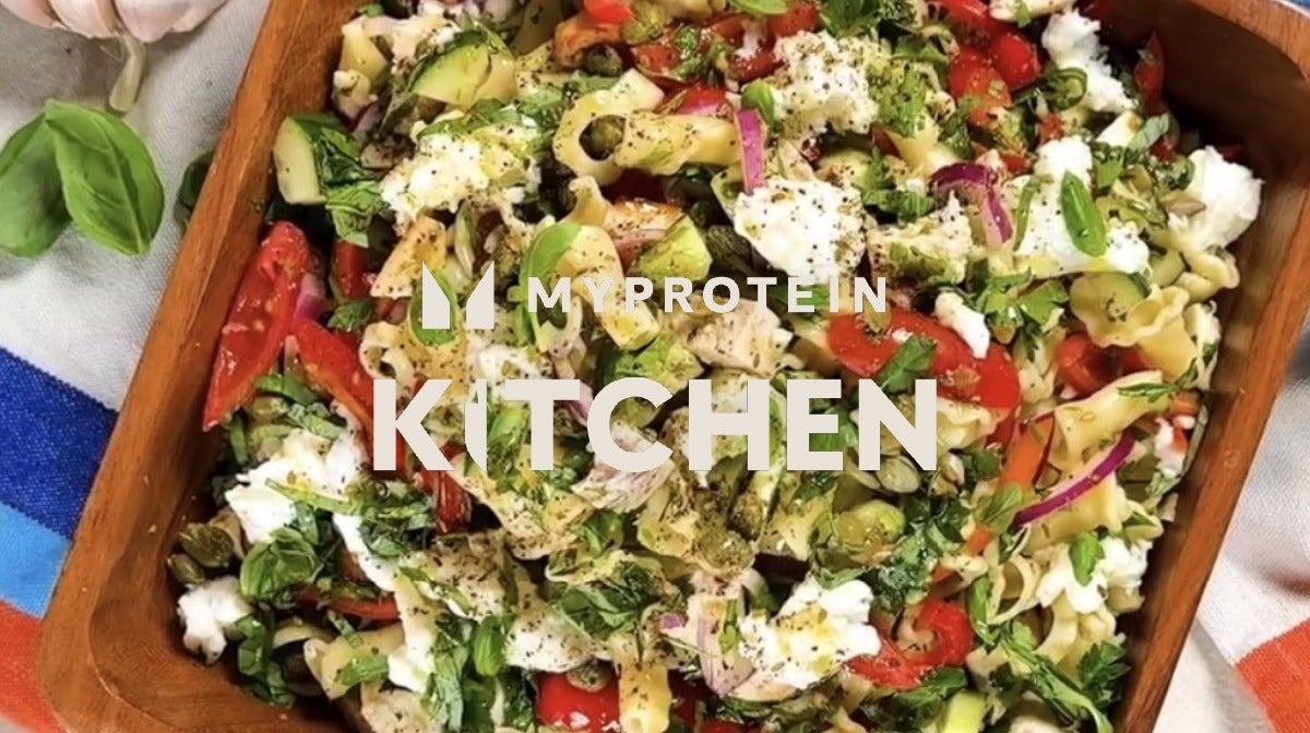 Wir sind selbst überrascht, wie einfach und unkompliziert dieser Nudelsalat in der Zubereitung ist. In Windeseile zubereitet versorgt dich jede Portion mit 26g Protein bei lediglich 415 kcal.