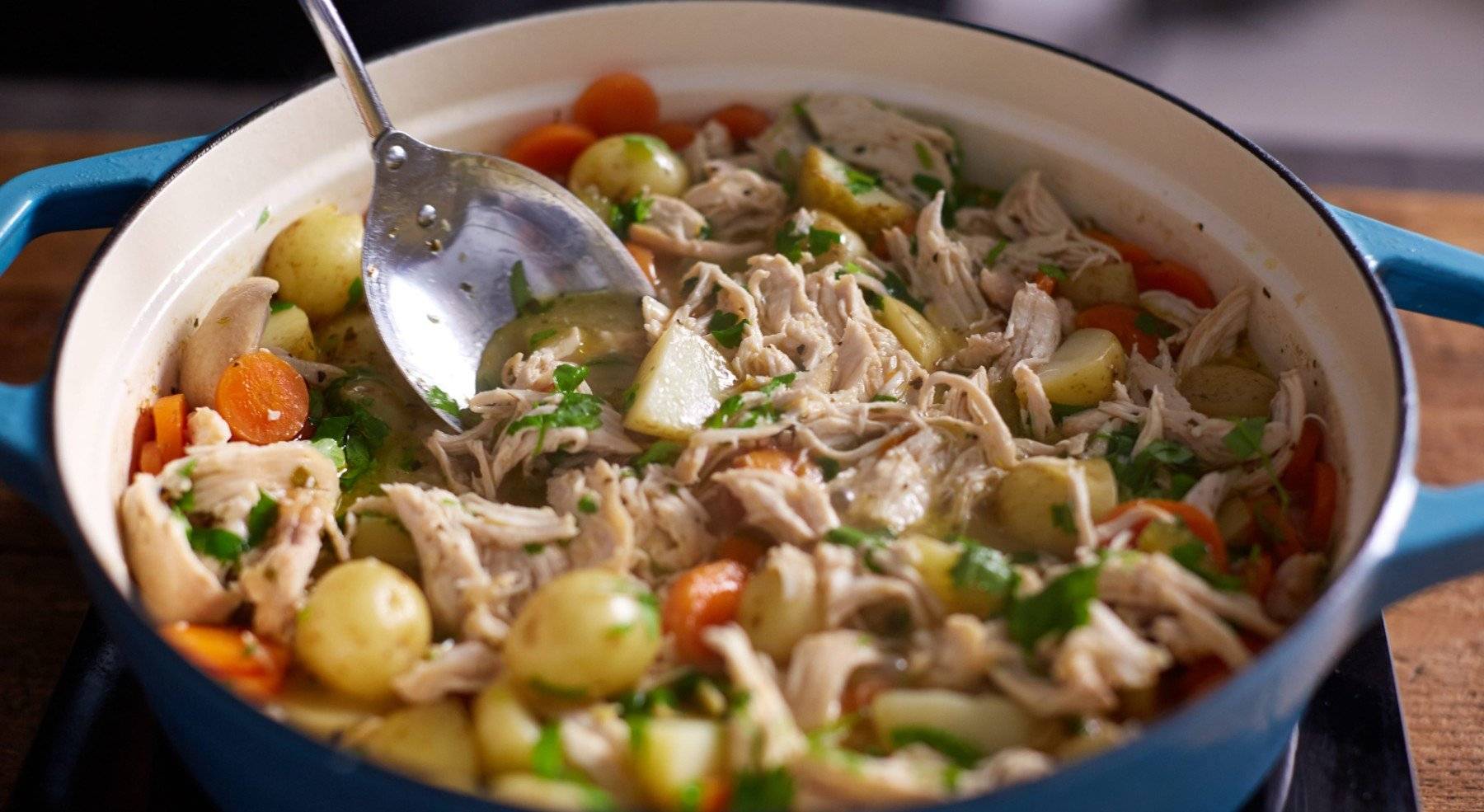 Dieser wärmende Hühnereintopf ist ein echter Klassiker, der dich die Kälte im Freien sofort vergessen lässt. Es ist das perfekte Gericht, um am Sonntagabend zubereitet zu werden, wenn du dich für die kommende Woche vorbereitest – du wirst dich garantiert mehr auf das Mittagessen freuen, als sonst. Vertrau‘ uns.