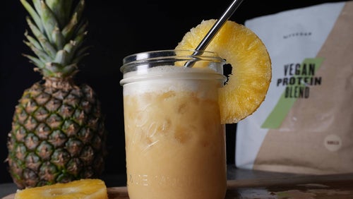 Gib zunächst alle Zutaten in einen Mixer und mixe alles gut durch, bis du eine cremige Masse erhälst. Sei aber vorsichtig: Mixe das Ganze nicht zu lange, da sich der Inhalt ansonsten zu stark erwärmt und flüssig wird (und das heißt, dass du das Protein Eis nicht sofort verspeisen kannst).