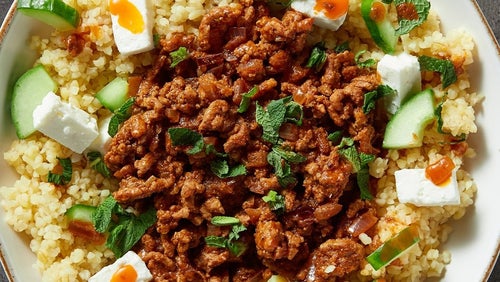 Würziges Lamm mit Feta-Bulgur