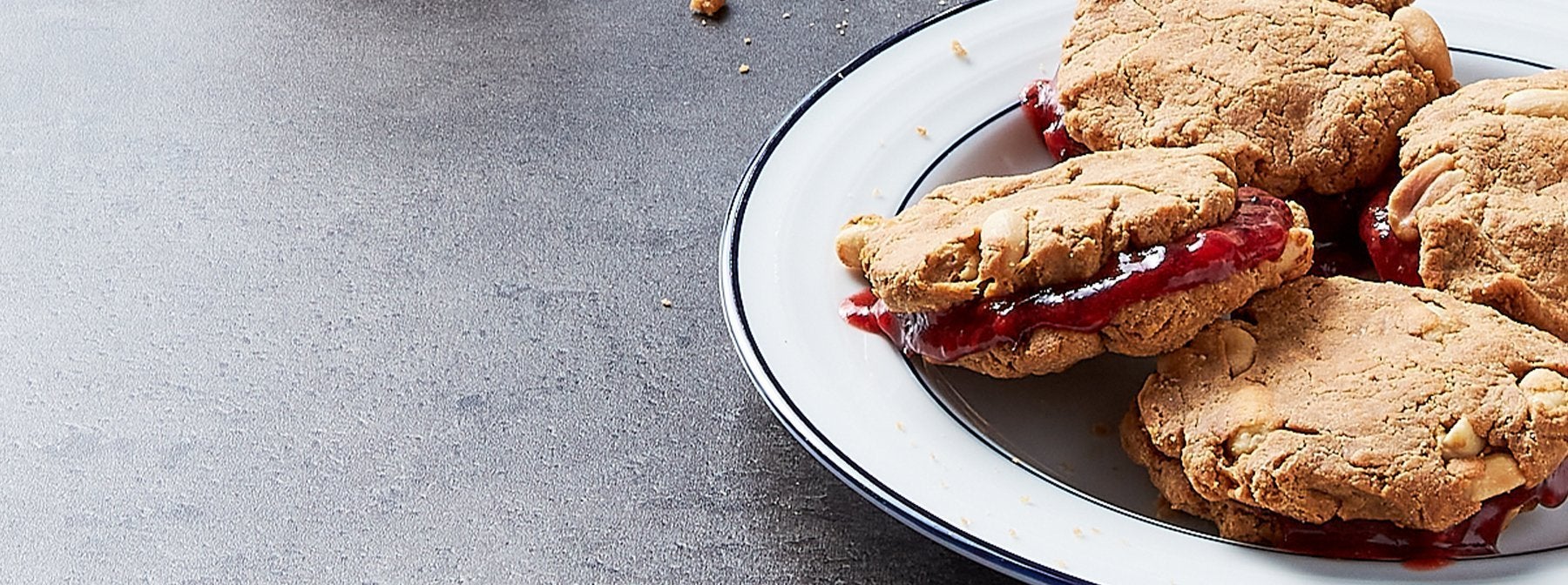 - Löffle zum Servieren eine Schicht Marmelade auf einen Cookie und lege dann einen zweiten Cookie oben drauf. Guten Appetit!