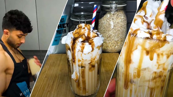- Gib zunächst alle Zutaten in eine Schüssel oder einen Mixer (mit Ausnahme von der Schokolade, den Erdbeeren und der Milch). Mische alles sorgfältig miteinander. Wenn der Mix zu zäh ist, kannst du langsam ein wenig Milch hinzugeben.