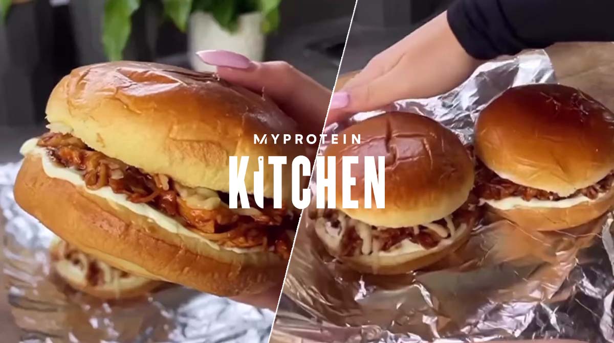 Bei diesem köstlichen Burger mit saftigem, geschreddertem Hähnchenfleisch von