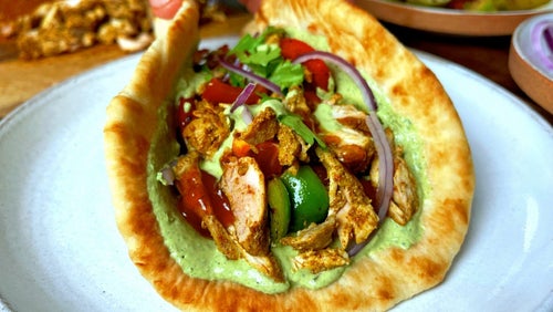 Rühr‘ die Marinade an, wirf dein Hähnchen auf den Grill und ab damit auf ein Flatbread. Deine Gäste werden begeistert sein.