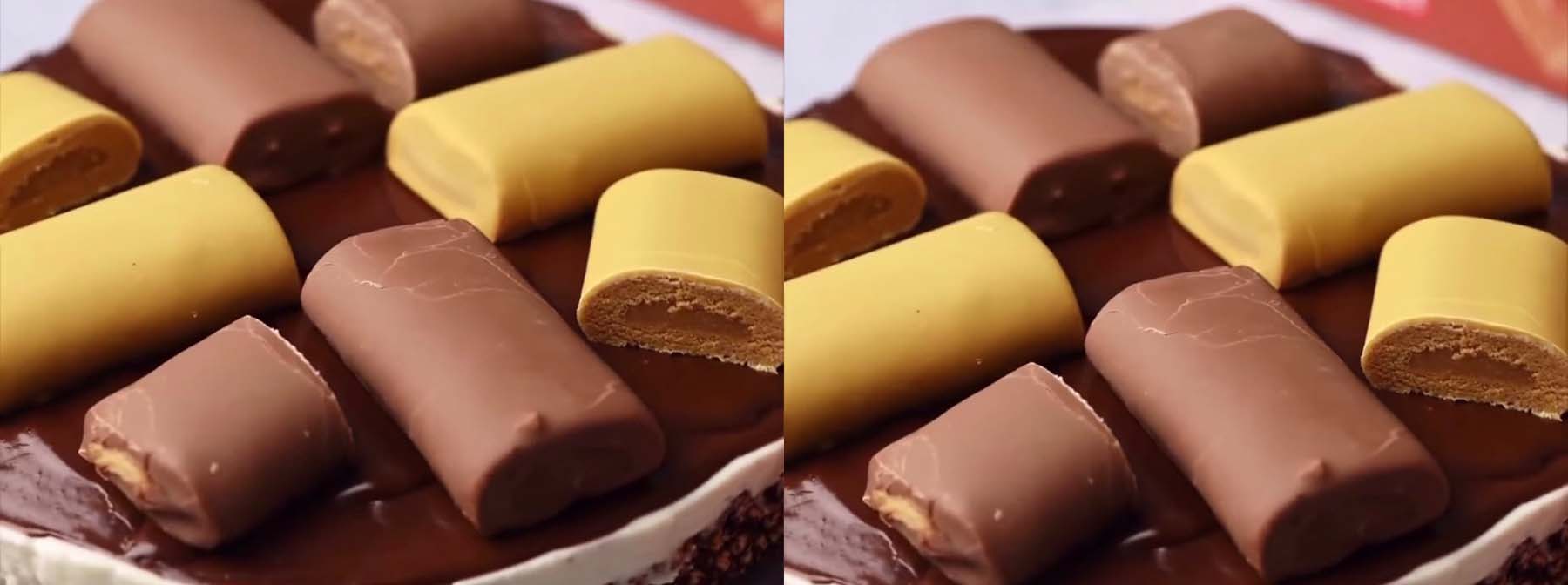 Toppe den Schoko-Crispies Protein Cheesecake beim Herausnehmen mit den Pop Rolls, ehe du dein Dessert genießt. Guten Appetit!