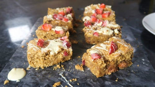 Weiße Schokolade & Erdbeer Cheesecake Blondies