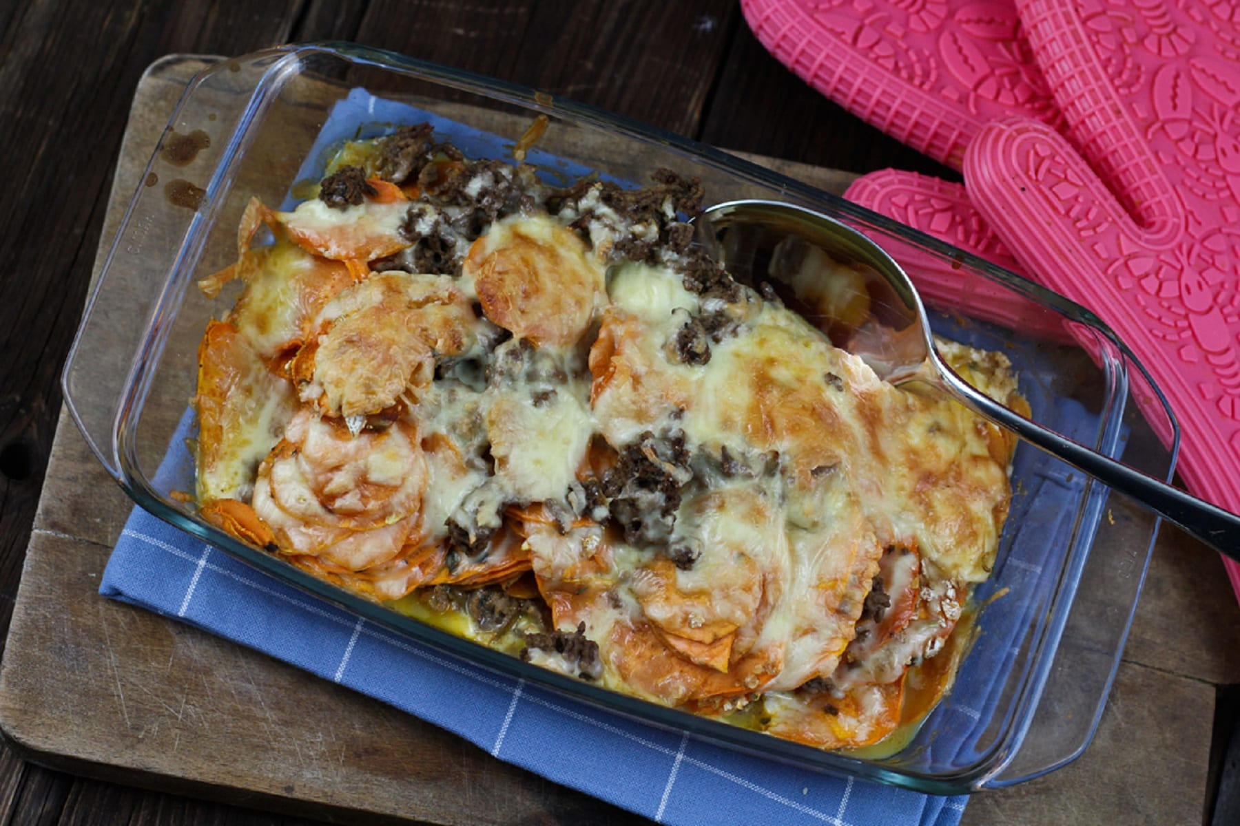 Dieser Süßkartoffel Tartar Auflauf ist schnell vorbereitet und Dank des Ofens schnell gemacht.