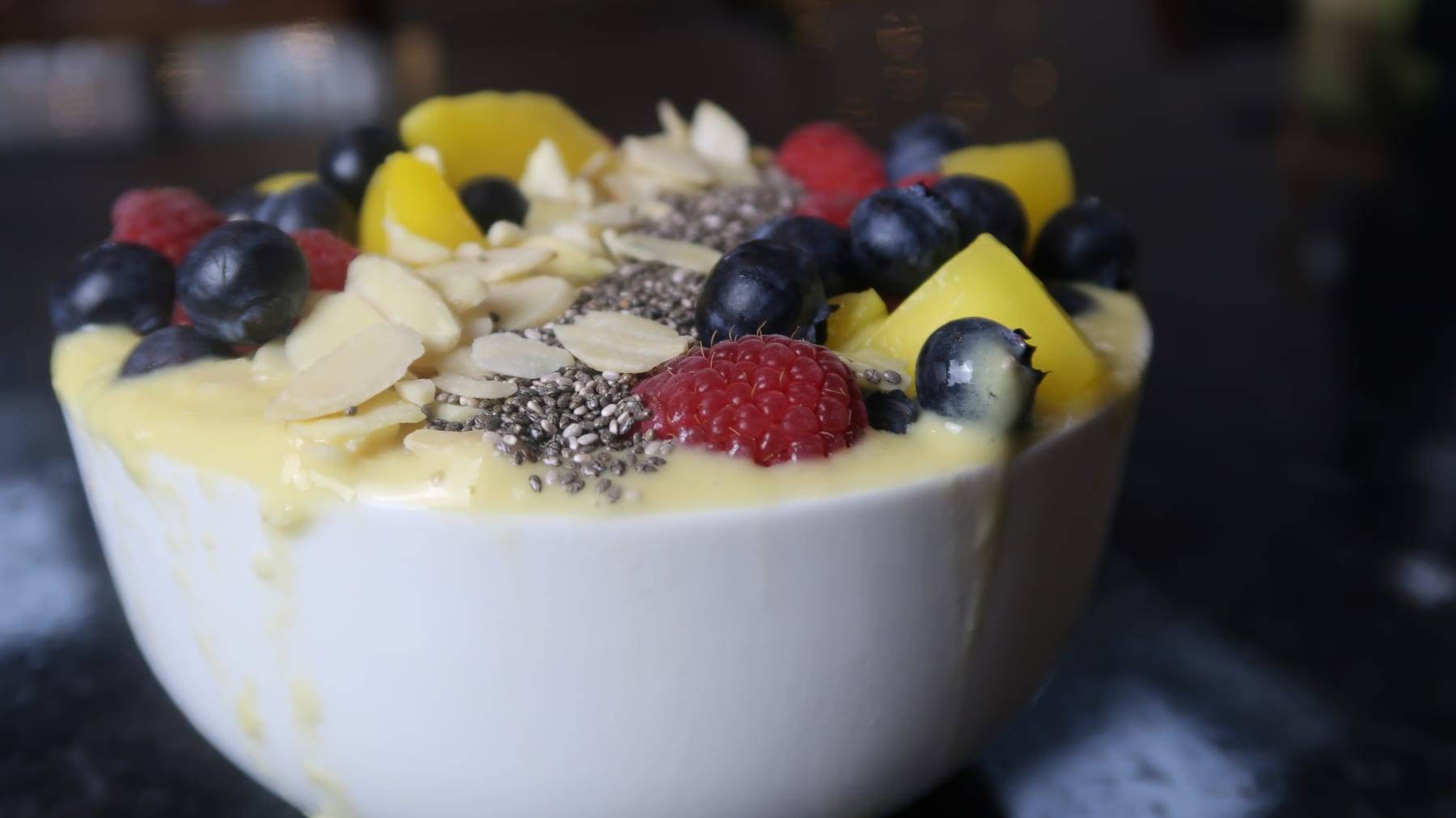 Wie wäre es, wenn du mit dieser leckeren Mango Smoothie Bowl ein wenig Sonnenschein zu deinem Frühstück hinzufügst?