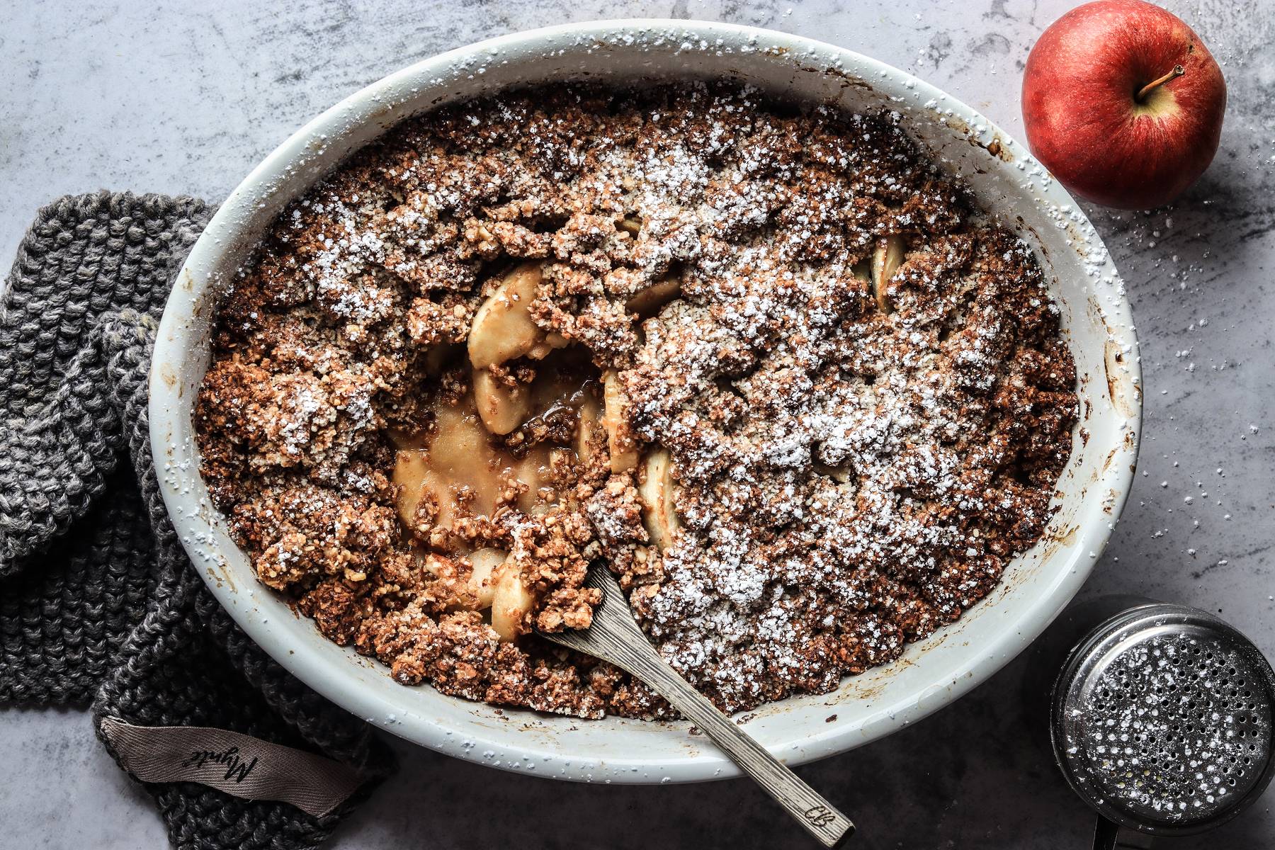 Verteile ihn auf den Äpfeln und backe alles für ca. 30 Minuten.