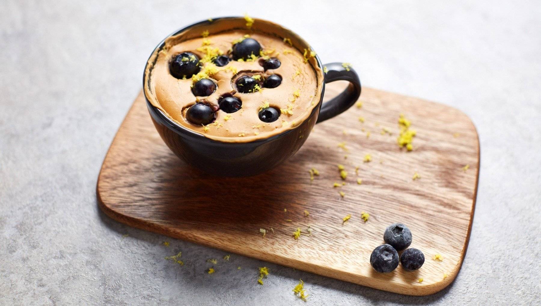 - Nimm den Blaubeer Mug Cake aus der Mikrowelle und lasse ihn zunächst 3-4 Minuten abkühlen, bevor du dich über ihn hermachst. Garniere ihn noch mit der Zitronenzeste und wenn du dir so richtig etwas gönnen willst, kannst du noch einen Spritzer Sirup draufgeben.