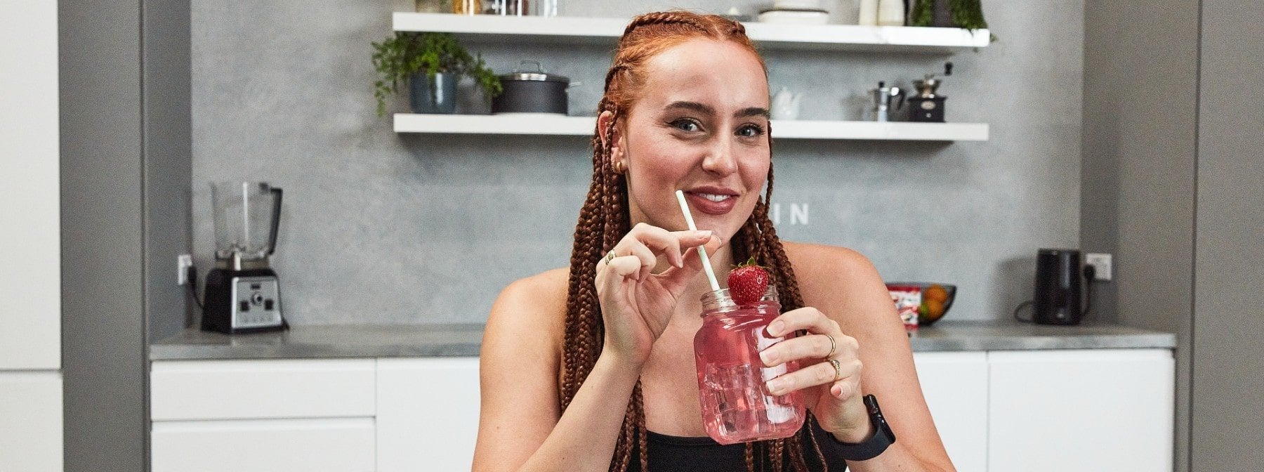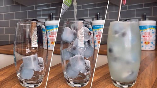 Mische in deinen Lieblings-Shaker 1 Messlöffel Very Cherry Clear Whey mit Wasser.