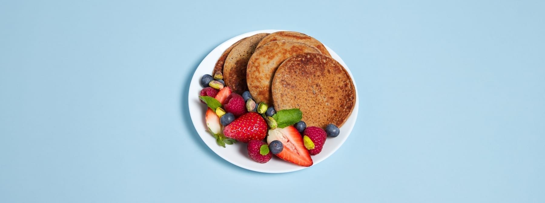 Sie besitzen zudem ein natürliches Aroma und enthalten satte 20g Protein pro Portion (aus Favabohnen und Weizen). Das sind garantiert die besten und leichtesten veganen Pancakes, die du jemals in deinem Leben zubereitet hast.