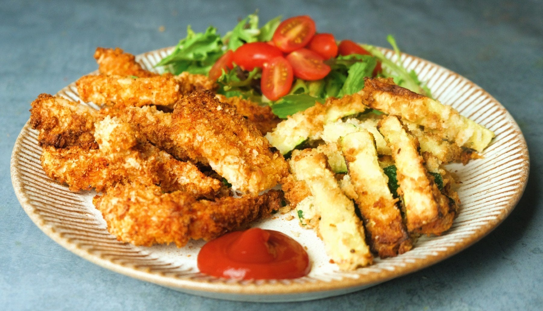 Würzige Hähnchen-Streifen mit Zucchini Pommes