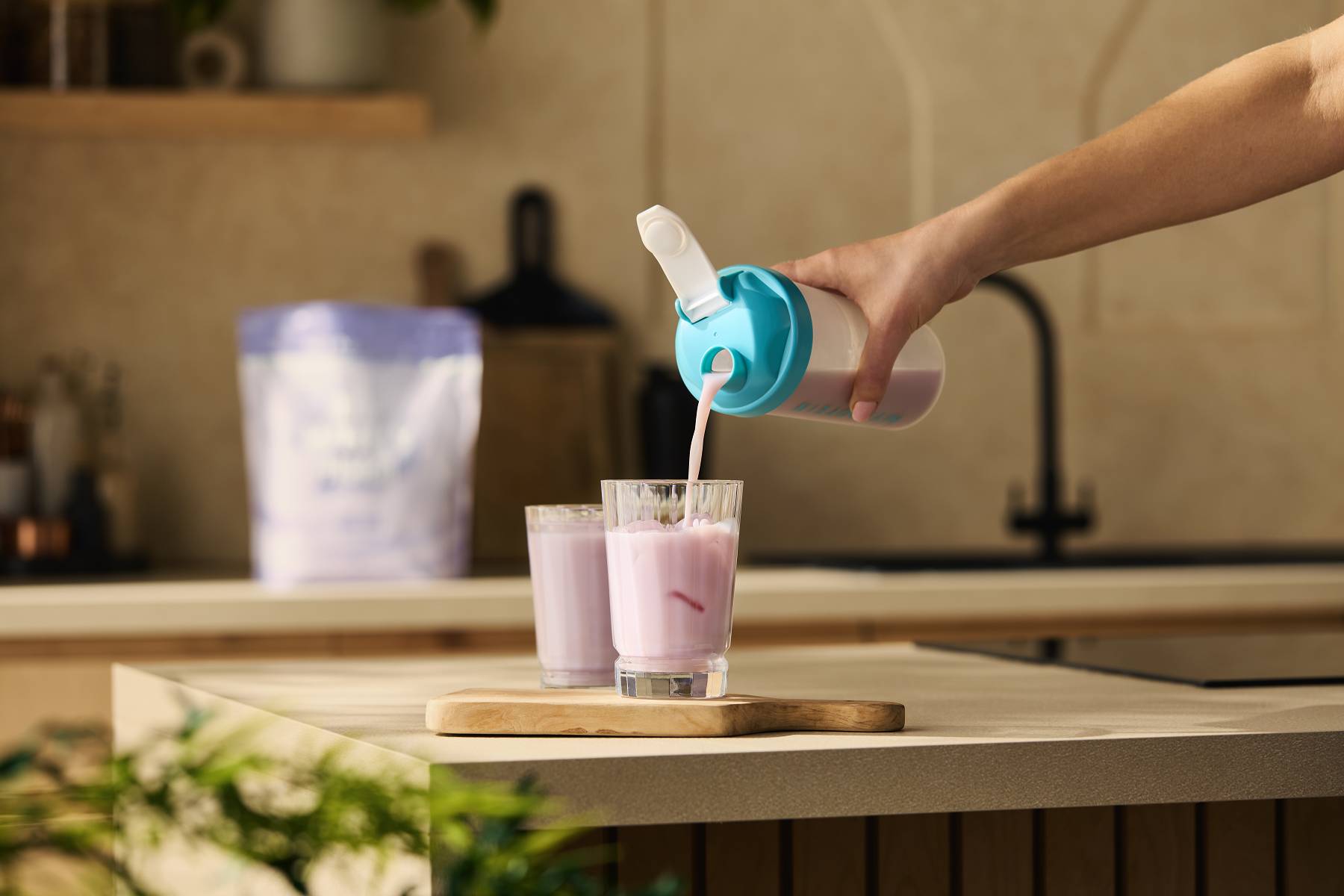 Du kannst den Nährstoffgehalt deines Shakes erhöhen, indem du ihn einfach mit Milch mischst. So wird er einer Mahlzeit ähnlicher und du bekommst gleichzeitig wertvolles Kalzium und zusätzliche Proteine.