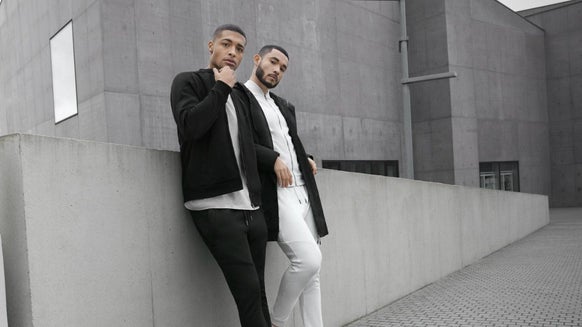 - Stelle dich aufrecht hin und halte die Kurzhanteln zu deinen Seiten.