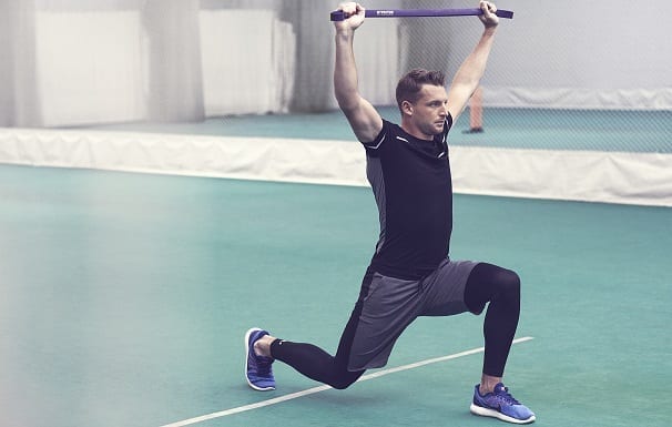 Bevor wir jedoch mit dem Training beginnen, sollten wir uns richtig aufwärmen. Die Bänder eignen sich hervorragend dazu, die Rotatorenmanschette auf Betriebstemperatur zu bringen. Dazu greift man ein Band an beiden Enden und hebt es vor dem Körper mit gestreckten Armen nach oben und lässt es hinter dem Körper wieder ab. Danach erfolgt das ganze in entgegengesetzter Richtung, bis das Band wieder vor dem Körper ist.
