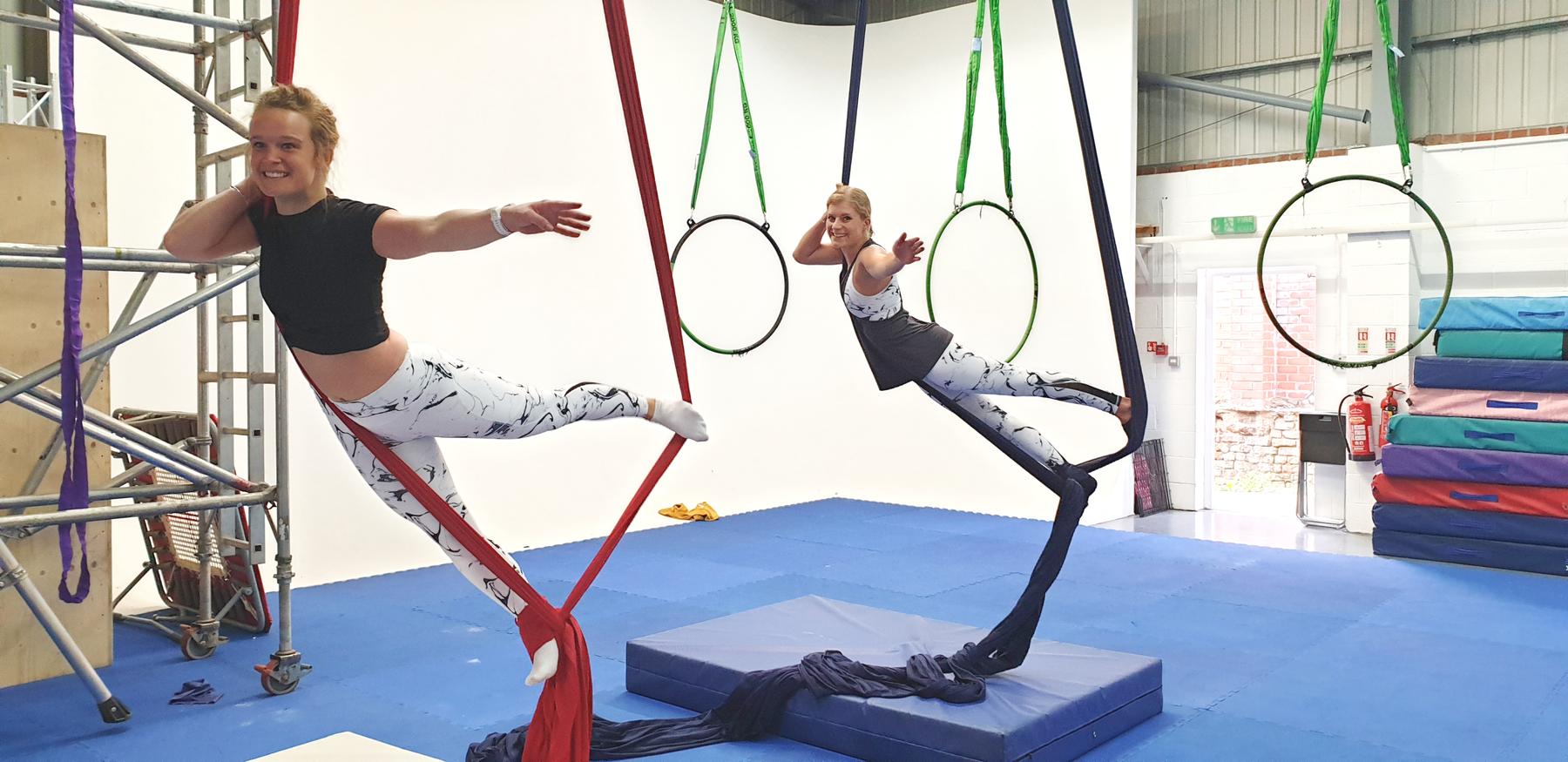 Wir waren sehr aufgeregt, dass wir einen ganzen Vormittag damit verbringen konnten, unsere Balance und Kraft zu testen. In einem großen Lagerhaus in Manchester, voll mit Seidenbändern, Reifen, Polestangen und vielem mehr, ist das Cloud Aerial Arts Studio untergebracht.