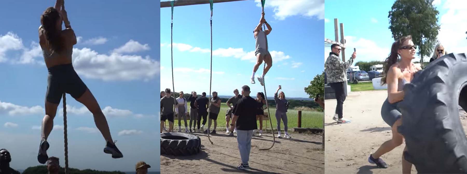 Da Lucy zu den kleineren Teammitgliedern gehörte, war sie sofort im Nachteil. Aber sie schaffte es trotzdem. Zum Abschluss des Tages mussten sie Tyre Squats und Tyre Chest Presses absolvieren. Es war hart, aber sie schafften es.
